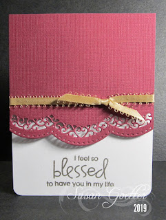 I took a selfie the other day...do you know that there is NO way to take a photo that hides all the lines, wrinkles, and thinning white hair?!! So...this is the real me. My profile photo is probably 12 years ago...so much has changed in those 12 years! Anyway, I digress, and I can't do anything about the way I look. In December I'll be 70 years old...WOW!! This Alan Jackson song kind of sums up my life at this point. I printed the lyrics on the background paper. These papers are from a DCWV Hello Darlin' paper pad. The scalloped edges were punched with EK Success punch. The title letters were cut with QK dies (Diesel) and layered 3 times for dimension. I also added some crystal glaze to each letter. The flowers are a print and cut from the Silhouette Store that I resized to fit the corner of the photo. I backed the photo with a thin black frame. I also added a very thin black strip to each of the side borders. I also added some pink Nuvo drops around the flowers. No journaling except for the song lyrics.