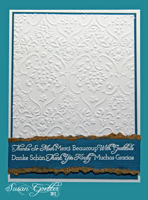 This card was actually the first card I made...and it's the only one that I used a "real" stamp on. The image and sentiment are both from Flourishes, stamped in black Mementos ink and colored with Copics.